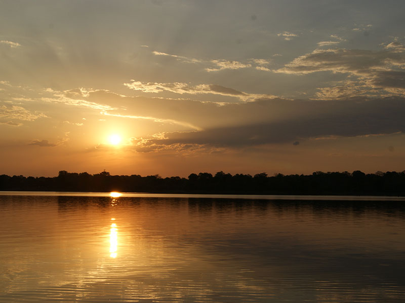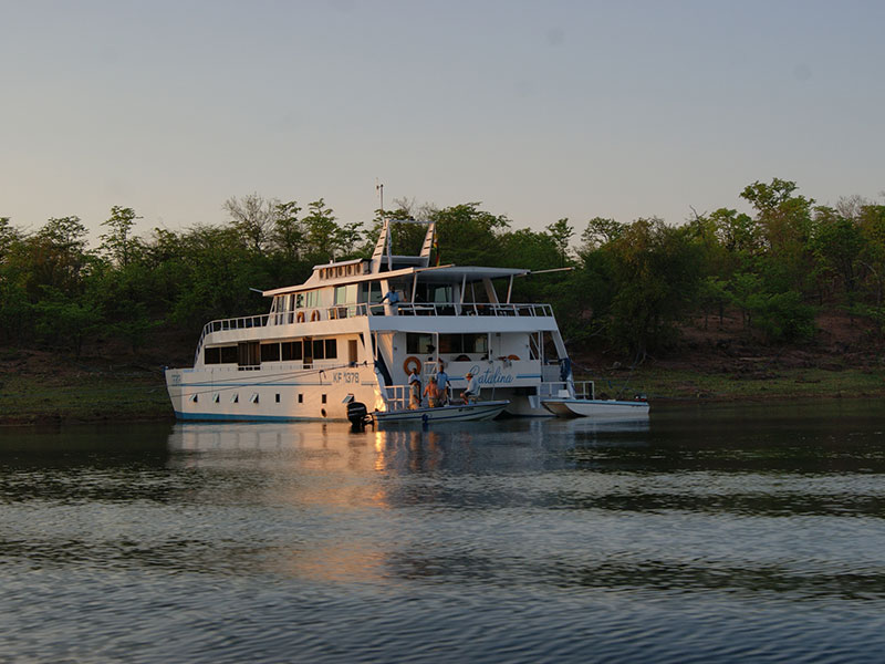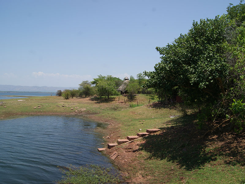 Du er ved vår camp, Tiger Bay ved Lake Kariba i Zimbabwe, klar for å fiske Tiger Fish.